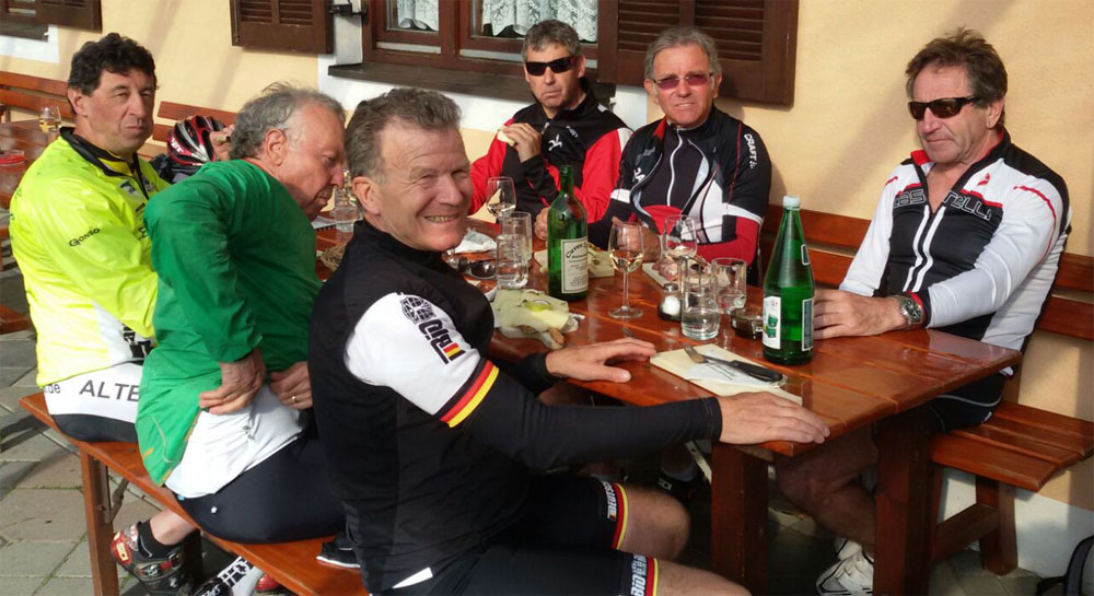 Bei idealem Radwetter führten die Touren ins Burgenland, Ungarn und nach Slowenien. Die tägliche Einkehr in einen der vielen Buschenschanken, zu einer deftigen Brotzeit und einem Glas Wein durfte nicht fehlen. Ca. 370 km wurden in dem mehr als hügeligen Gelände abgestrampelt.