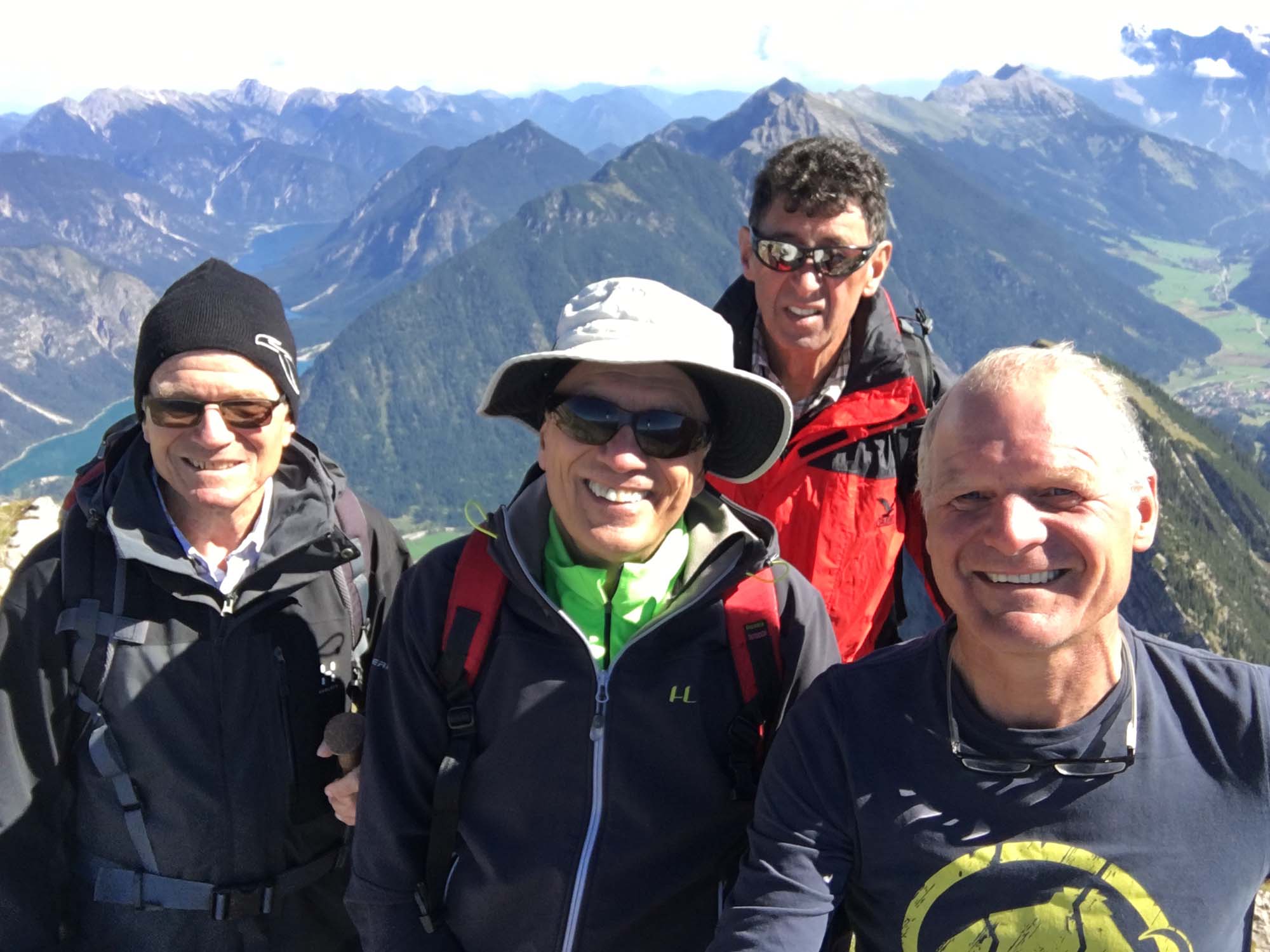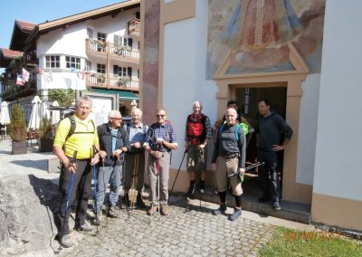 Am Mittwoch, 31.08.2016, haben sich sieben Mitglieder unserer Seniorensportgruppe zu der diesjährigen gemeinsamen Bergtour getroffen. Um 07.00 Uhr gings in Schongau los, die Fahrt führte uns nach Partenkirchen zum Parkplatz an der Wankbahn. Ein strahlend blauer Himmel und Sonnenschein versprach ein tolles Bergwetter. Hubert, unser Führer, lotste uns über den Panoramaweg bergwärts Richtung Wank. Laufend hatten wir einen wunderschönen Blick zum gegenüberliegenden Wettersteingebirge, die Fotoapparate glühten. Im Laufe der drei Stunden Aufstieg wurden einige Schweißtropfen verloren. Am Gipfel angekommen, konnten wir einen fantastischen Rundblick genießen. Nach einer Brotzeit erfolgte der Abstieg zur Esterbergalm, leider hatte diese Alm Ruhetag. Aber auf einen Hinweis von Bauarbeitern hin wanderten wir zu einer naheglegenen kleinen Alm. Von dem jungen Sennerehepaar wurden wir mit Getränken, Kaffee und Kuchen bestens versorgt. Frisch gestärkt machten wir uns auf den Abstieg ins Tal. Nach einem insgesamt langen Marsch (21 km) erreichten wir den Ausgangspunkt bei unseren Fahrzeugen. Auf der Heimfahrt machten wir zu einem gemeinsamen Abendessen in der Schleifmühle eine Einkehr.