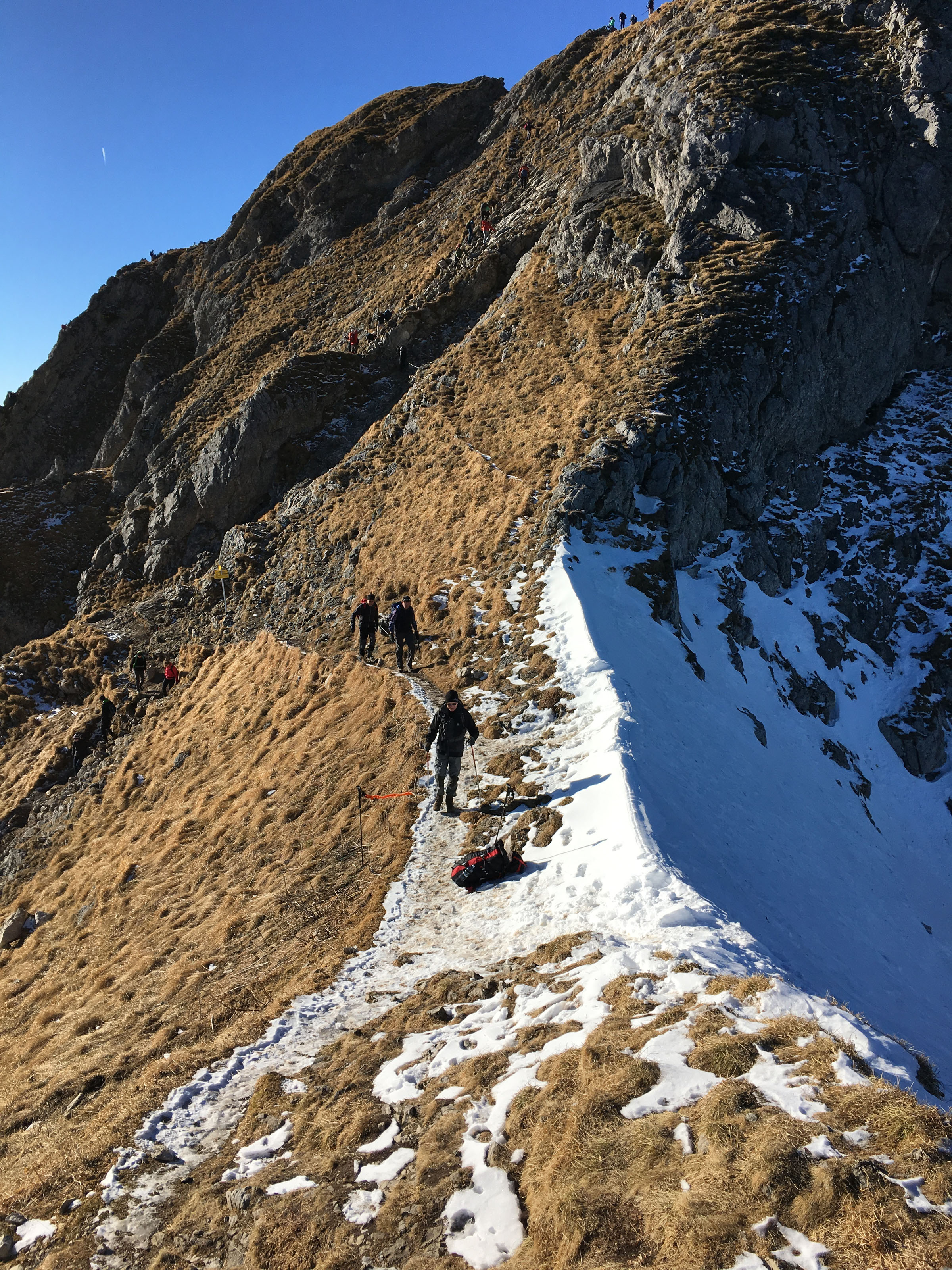 Von dort ging es auf schönem Steig zum Hupfleitenjoch. Das Wetter tat ein Übriges, strahlend blauer Himmel ermöglichten