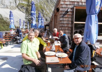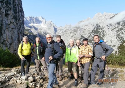 Für die gemeinsame Bergtour 2017 der Seniorensportgruppe hat sich Hubert Engel einen beliebten Rundwanderweg in der Zugspitz-Region ausgesucht. Neun Mann starteten am 08.09.2017 an der Talstation der Kreuzeckbahn. Die Bergstation wurde mit der Bahn erklommen.